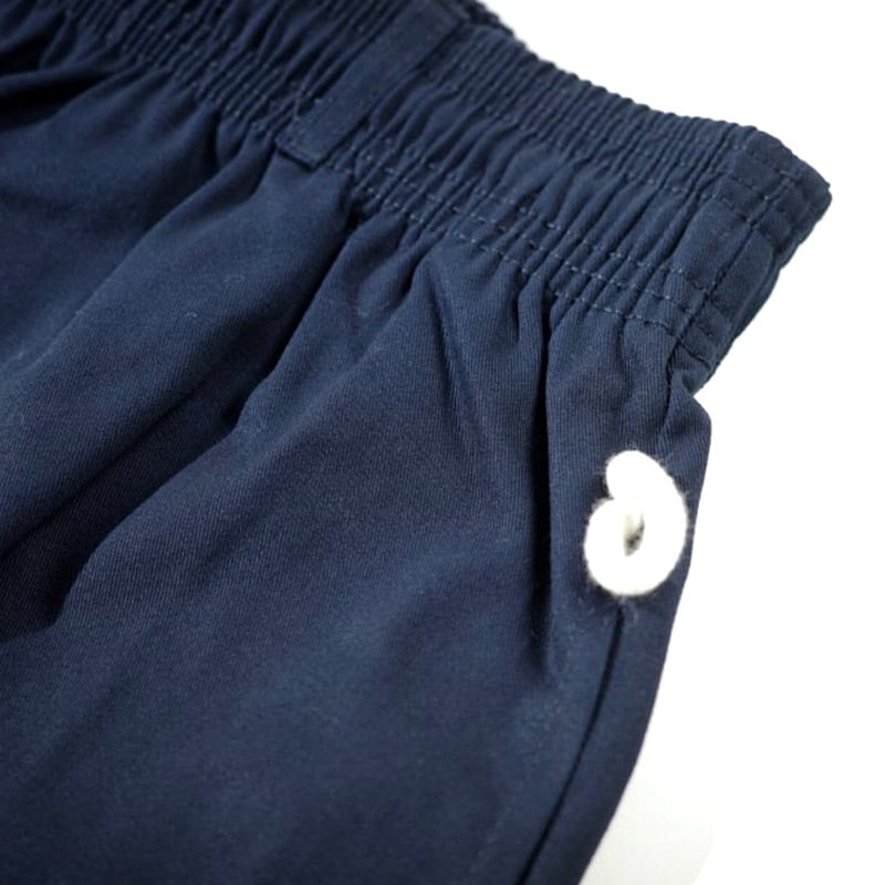 肌にやさしい綿100%素材を使用した、使い勝手のよいショートパンツです。ほどよいハリと柔らかさを兼ね備え、汗ばむ季節もさらりと快適。ウエストは総ゴム仕様でストレスなく穿け、リラックス感のあるストレートシルエットが脚まわりにゆとりを生みます。両脇ポケットに加え、背面には大きめのパッチポケットを2つ配置し、スマホや小物の収納にも便利。落ち着いたネイビーにワンポイントのアクセントを添え、Tシャツやポロ、シャツとも好相性です。デイリーからワンマイル、旅行やアウトドアまで幅広いシーンで活躍。家庭での洗濯も簡単で、毎日手に取りたくなる一枚。
