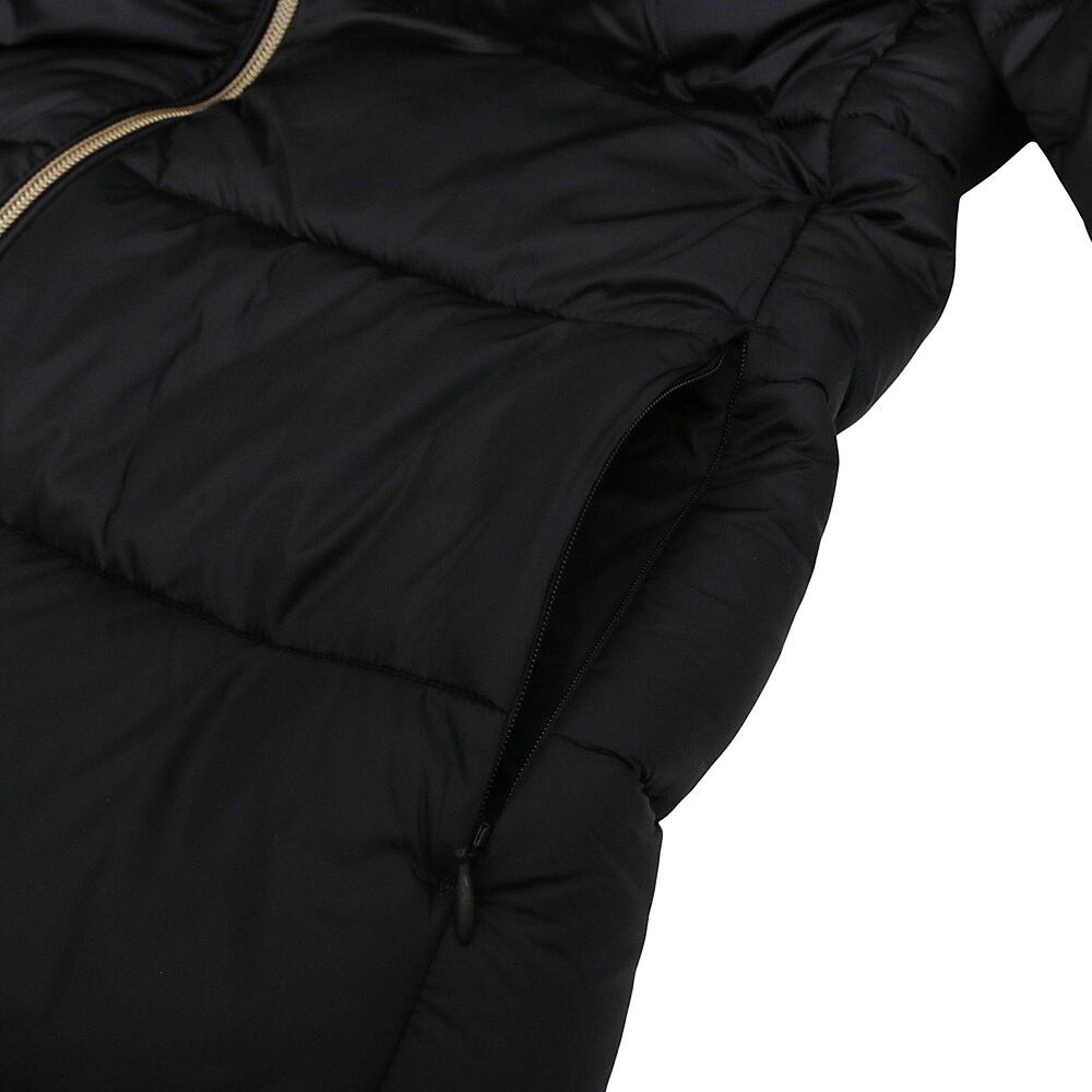 超ロングシルエットが特徴的な「LYSA」モデルのフード付きパファーコートは、最大限のカバー力と快適性を提供します。高い襟にはルシュ効果を施し、使用しない際はスナップボタンでフードを隠す設計となっています。サイドポケットは目立たないジッパーで固定され、クリーンなデザインを維持。左袖のシグネチャーラウンドロゴとトーンオントーンのジッパープルが、SAVE THE DUCKならではの個性的なアクセントを加えています。
