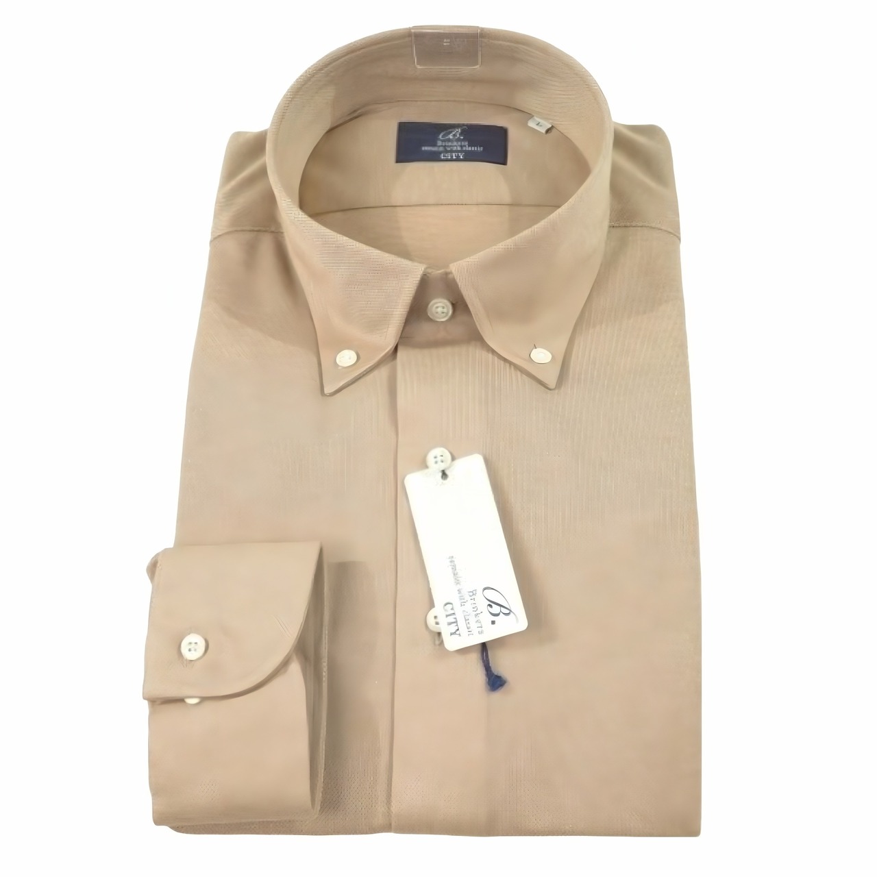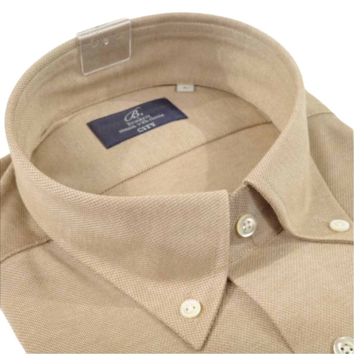 老舗シャツメーカー Brinkers ブリンカーズ シャツ CITY ボタンダウン ストレッチ 織柄 Mサイズ 39-82 ベージュ おしゃれ 人気 ブランド オフィス ビジカジ 誕生日 記念 プレゼント ギフト 送料無料