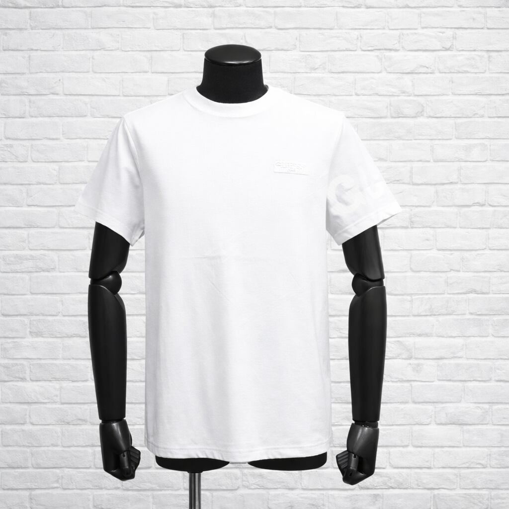 GUESS ゲス 半袖Tシャツ Small Logo 無地 ロゴ ワンポイント クルーネック ストレッチ 防シワ 吸水速乾 ホワイト Mサイズ おしゃれ 人気 ブランド 誕生日 記念 プレゼント ギフト 送料無料