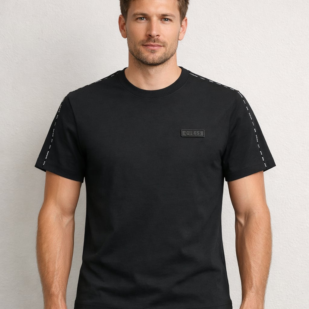 GUESS ゲス 半袖Tシャツ trimming Logo tape Tee Sorona Agile クルーネック ブラック Mサイズ おしゃれ 人気 ブランド 誕生日 記念 プレゼント ギフト 送料無料