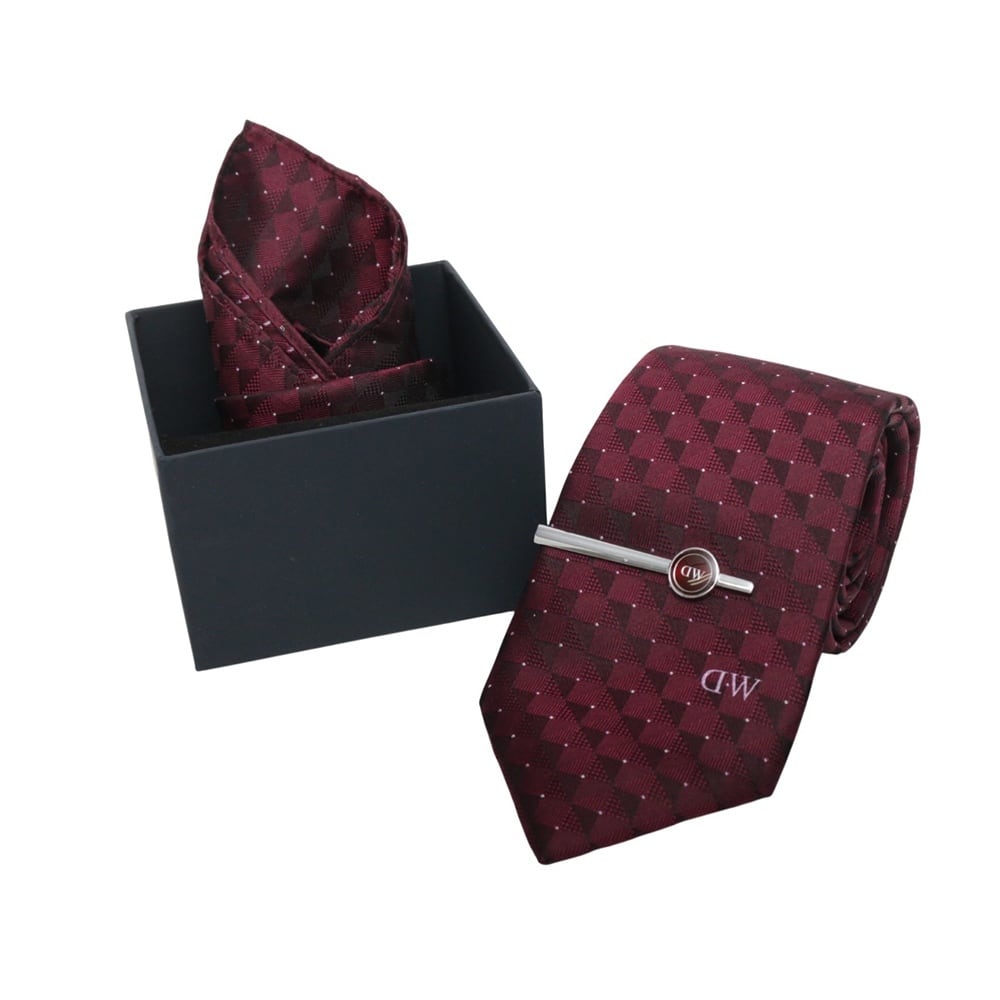 【ギフト対応可】ダニエルウェリントン DANIEL WELLINGTON ネクタイ&チーフ&タイバー 3点セット メンズ ドット ワインレッド おしゃれ 人気 ブランド 誕生日 記念 プレゼント ギフト 送料無料