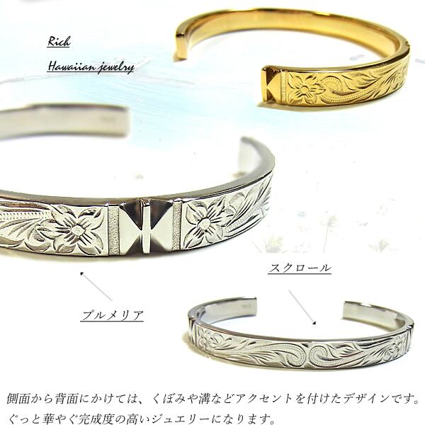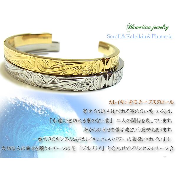 全2色 ハワイアンジュエリー ブレスレット バングル シルバー ゴールド プルメリア スクロール ホヌ ステンレススチール316L ファッション アクセサリー ジュエリー 人気 ブランド おしゃれ 誕生日 記念 プレゼント ギフト 送料無料