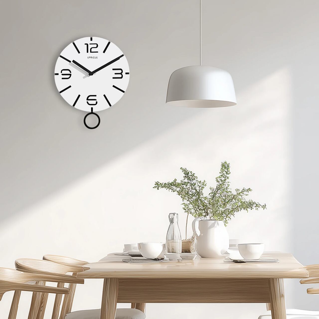 「Chrono White」は、ミニマリズムと遊び心を融合させた、現代的な振り子時計です。