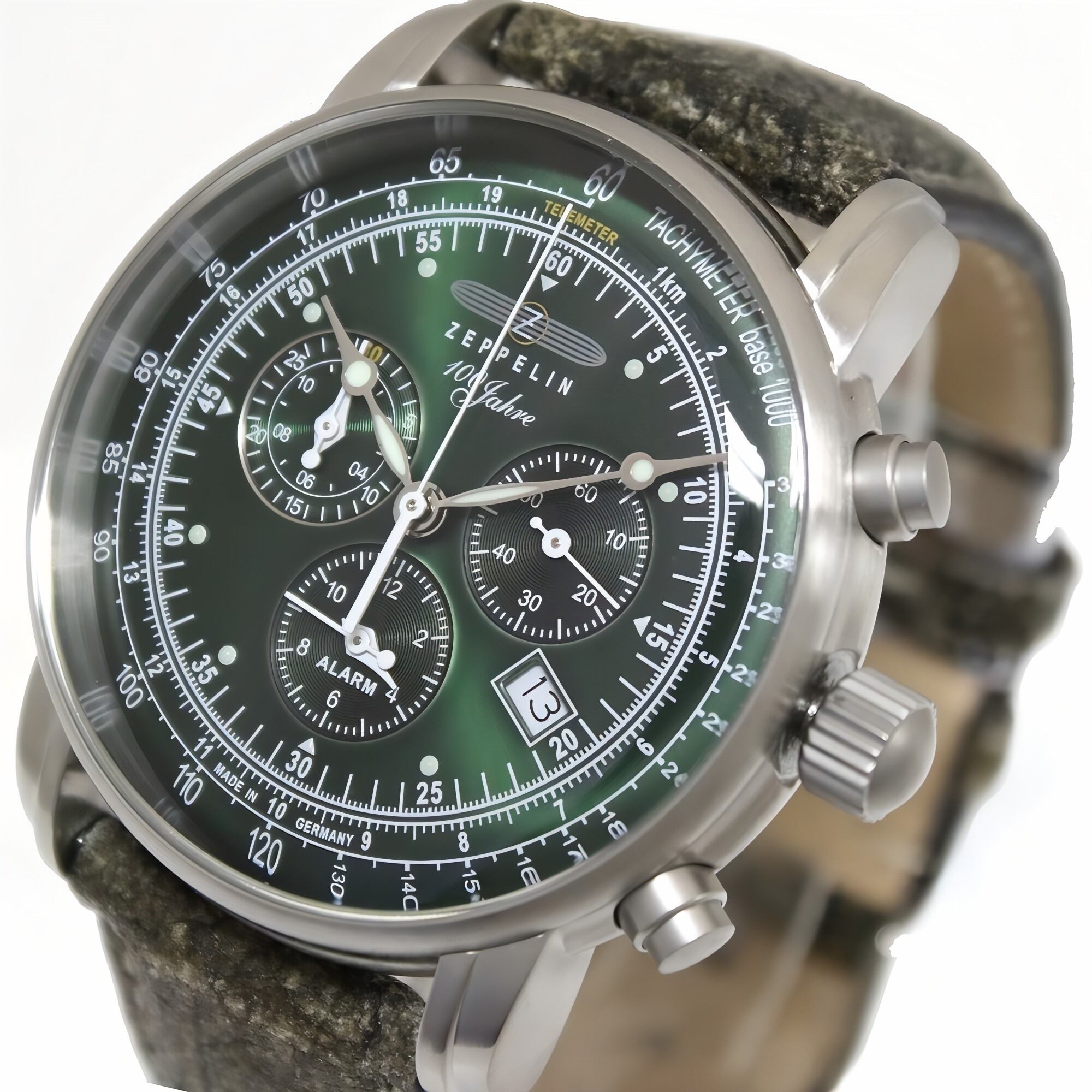 【ギフト対応可】ツェッペリン ZEPPELIN 腕時計 100周年記念シリーズ クロノグラフアラーム メンズ クォーツ グリーン カーキ おしゃれ 人気 ブランド 誕生日 記念 プレゼント ギフト 送料無料