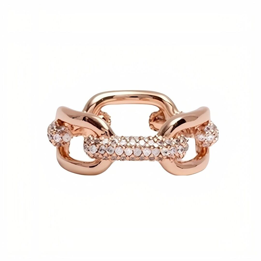 インダストリアルな要素と細部に散りばめられたクリスタルの洗練さが融合し、ローズゴールドリンクリングはこれまでにないチェーンになりました。Crystal Linkコレクションの他のアイテムと合わせても、単体でも、主役級のパワフルなリングです。
