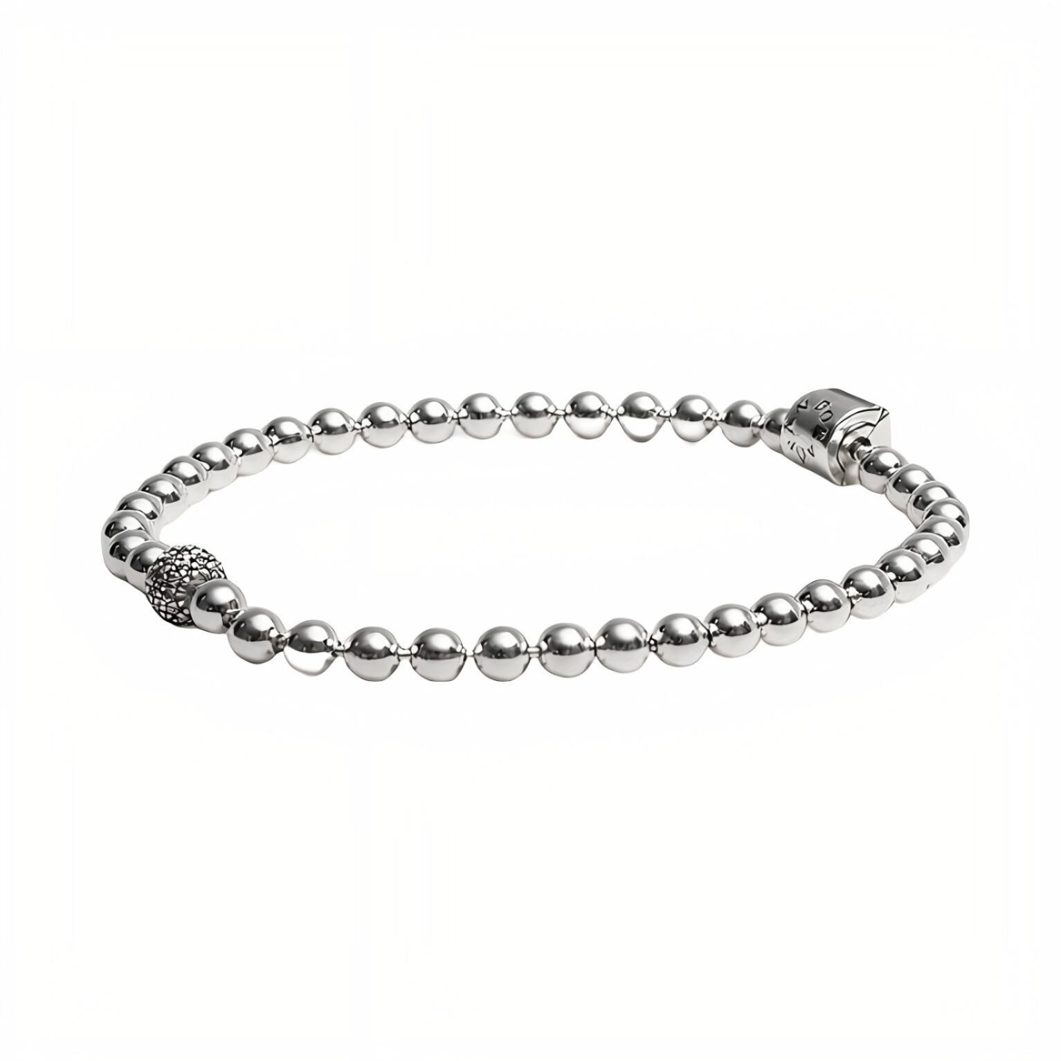 ボリューム感のあるエッジーなビーズに優雅な雰囲気を添えたジュエリーをお探しなら、スターリングシルバーを使ったこのBeads & Pavé Braceletが最適です。このブレスレットのデザインは、ボディピアスをアレンジし、パンクスタイルから着想を得て誕生しました。ポリッシュ仕上げが上品なテイストをプラスします。全体にビーズを並べたチェーンには、パヴェセッティングを施した一粒の大きなビーズと、バレルクラスプ付き。これだけで着用することも、異なるメタル仕上げを施したほかのブレスレットと重ねて一段と魅力を高めることもできるデザインです。